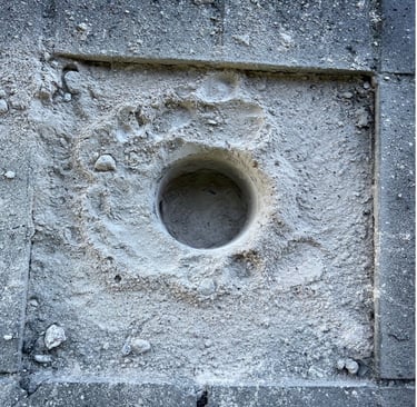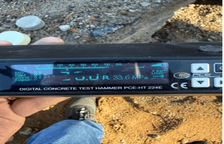 Objekte atlikti neardomieji betono stiprio bandymai naudojant kalibruotą PCE HT-225 atšokio plaktuką pagal LST EN 12504-2:2021, atlikta rezultatų statistinė analizė ir koreliacija su KTU laboratorijoje atliktais „Digi-Schmidt 2000“ bandymais bei atlikus kernų gręžimą ir transportavimą į akredituotą laboratoriją UAB „Testlita“ atlikti kernų gniuždymo tyrimai pagal LST EN 12390-3 ir EN 12504-1 metodikas. Taip pat atlikta pamatų fotofiksacija iš arti ir dronu (DJI Mini Pro 4), sudarytas defektų žemėlapis, įvertinti blokų sujungimai, siūlių būklė, paviršiaus pažeidimai ir galimos deformacijos.