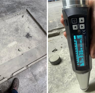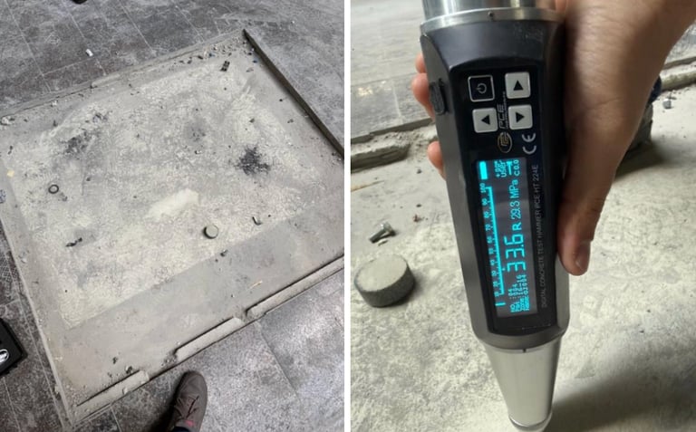 Ekspertinio tyrimo tikslas – kompleksiškai įvertinti esamo smėlbetonio grindų sluoksnio fizines ir mechanines savybes, nustatyti jo stiprumo parametrus bei įvertinti galimybę išsaugoti esamą pagrindą įrengiant naujas grindų dangas. Vertinimas apėmė grindų konstrukcijų analizę, sluoksnių storio nustatymą, neardomuosius stiprio matavimus vietoje bei kerninių bandinių paėmimą laboratoriniams tyrimams.
