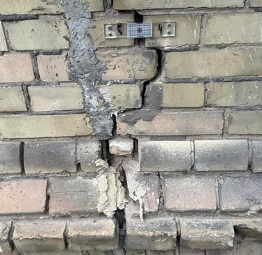 Siekiant objektyviai stebėti konstrukcijų elgseną laike, statinio trūkių zonose buvo įrengti mechaniniai deformacijų matuokliai.Monitoringas leidžia vertinti plyšių pokyčių dinamiką ir konstrukcijų stabilumo tendencijas, užtikrinant duomenimis pagrįstą tolimesnių sprendinių priėmimą.