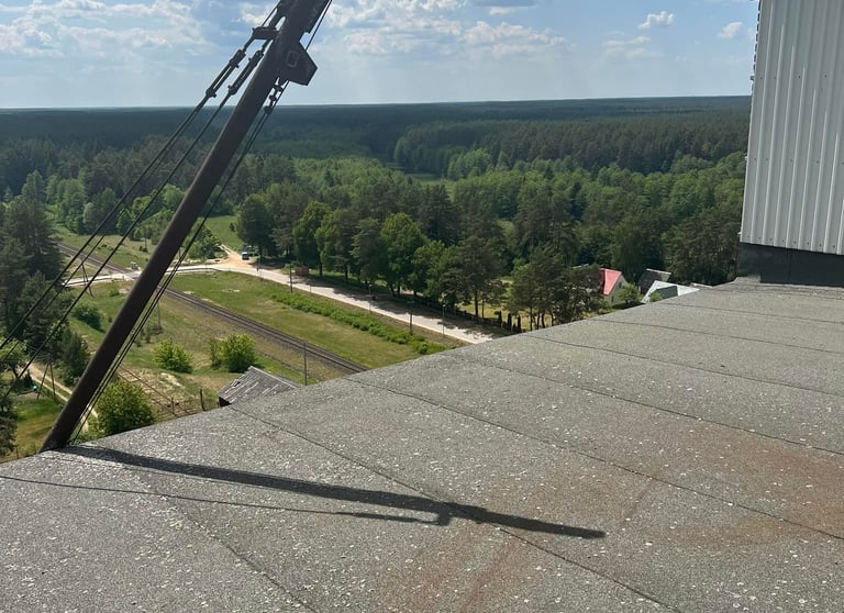 Tyrimų metu papildomai buvo įvertinti bokšto segmentų suveržimo momentai pagal pateiktus protokolus, patikrintas tvirtinimo elementų komplektiškumas ir montavimo kokybė, įvertinta konstrukcinių mazgų darbo schema ir apkrovų perdavimo principai. Geodezinių duomenų analizė leido įsitikinti statinių padėties atitiktimi projektiniams sprendiniams ir neidentifikuoti reikšmingų vertikalių ar horizontalių nuokrypių.